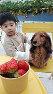 今シーズンも犬と一緒にイチゴ摘みを行います。