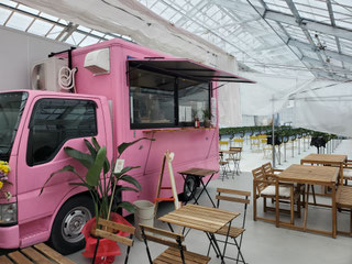 温室の中では、カフェも行っています。摘み取ったイチゴ、スイーツやいちごにあったドリンクも用意しています。