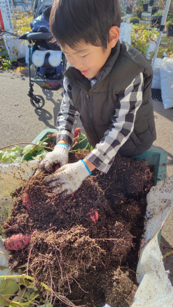 長靴もなく、ちょっとだけ洋服に土がつく程度で、お母さんにも優しいさつまいも掘りでした。