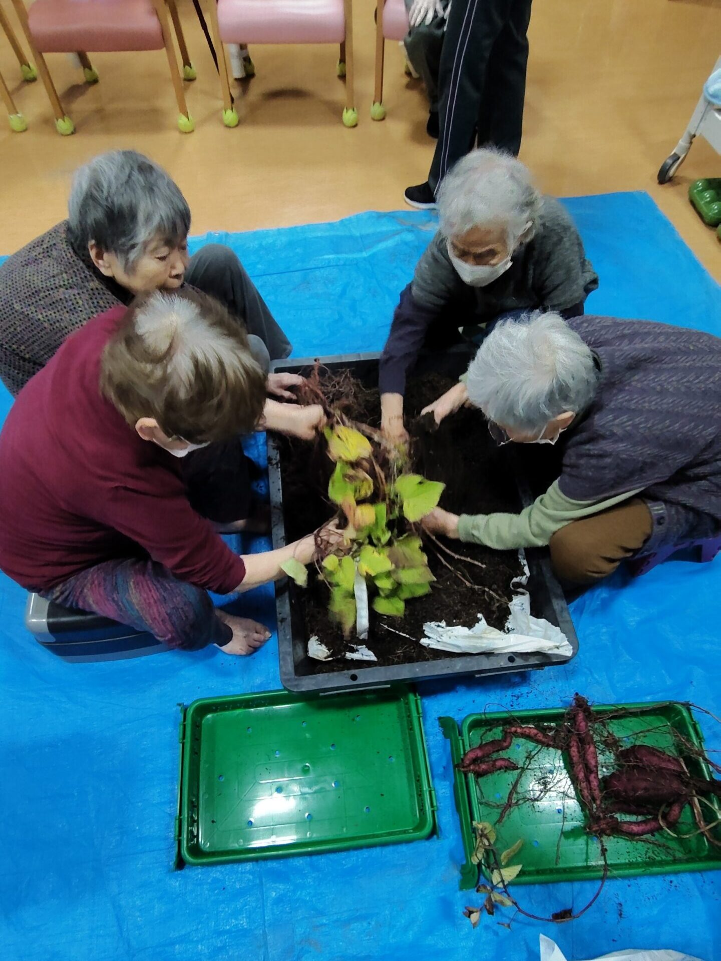 今回は、土に触れる機会が少なくなった方にやって欲しいなということで、ボランティアで出張さつまいも掘り体験をさせてもらいました。掘った芋は、後日おやつでおいしく食べてくださいね。